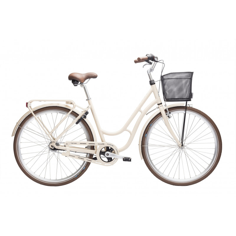 Rejäla skärmar i plåt, pakethållare, lås, stöd, ringklocka, reflexer och belysning, gör sig denna cykel i alla väder och oavsett kläder.